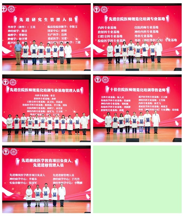 在随后进行的教育教学表彰环节中,任静宣布了2025年教学先进集体和先进个人名单。此次表彰,共设置院校教育、毕业后教育等15个奖项,16个集体和176位教师接受表彰。