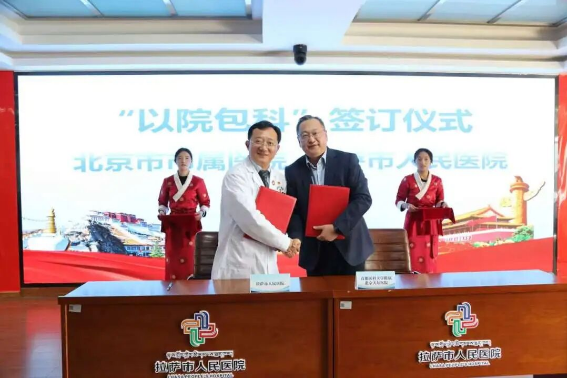 当天,在拉萨市人民政府、北京市卫生健康委、北京援藏指挥部等部门的有关领导见证下,11家北京市属医院与拉萨市人民医院续签了“以院包科”协议。