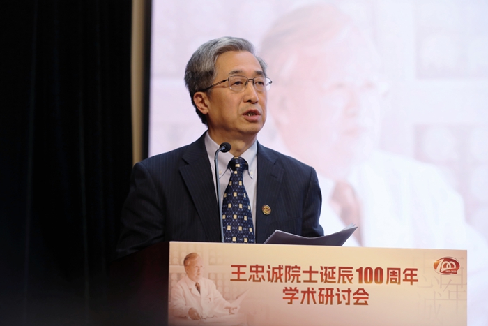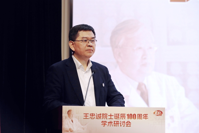 当天14时,王忠诚院士诞辰100周年学术研讨会于忠诚楼学术报告厅举行。中国工程院院士、原中国医学科学院院长中国协和医科大学校长巴德年、北京市卫生健康委党委书记钟东波、首都医科大学党委书记呼文亮以及王忠诚院士生前的同事、好友、学生代表,以及北京天坛医院领导班子、医院和北京市神经外科研究所的职工代表及学生代表等400余人齐聚一堂,追思院士生平,畅谈精神传承。研讨会由天坛医院党委副书记贾旺主持。