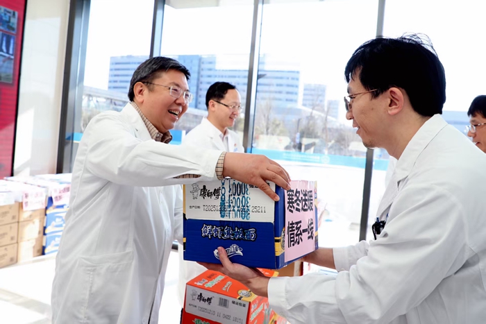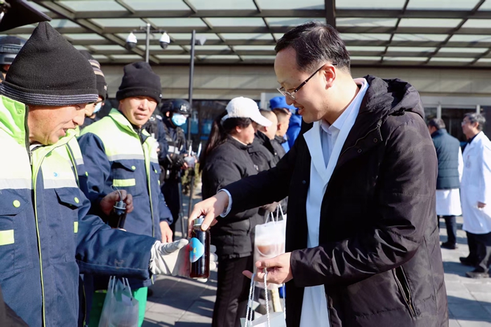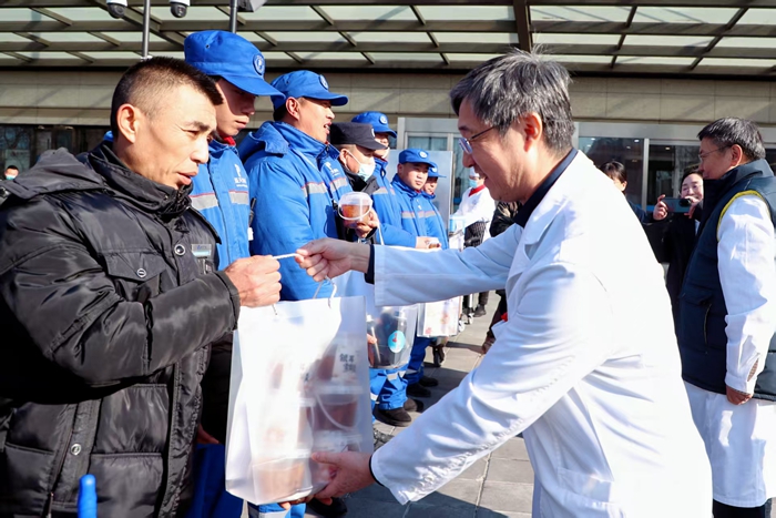 “越是天气恶劣,越体现医院干部职工的责任和担当。你们守护患者,医院也要守护好你们。”岳小林代表医院党委,向严寒中坚守岗位的各部门职工表示感谢。