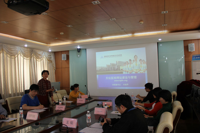 北京天坛医院网站连续四年在北京市医疗行业网站考核评比中获奖,自2009年医院网站建成后,截至2015年4月8日,累计点击量已达3330多万人次,近30天的日均点击率达5万人次。党委副书记肖淑萍在发言中,指出我院网站的定位,就是为医院的中心工作服务,包括为患者服务,对健康知识的传播;为医院的学科建设和职工教育服务;为医院的品牌建设服务。肖书记介绍了我院官方网站目前已实现的功能及特色。在网站管理经验中,她强调了领导重视,健全制度,团队协作和内容常新四个方面。