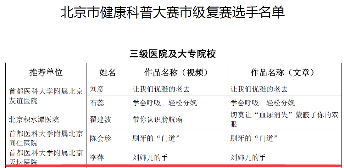 我院选手李萍晋级北京市健康科普大赛复赛