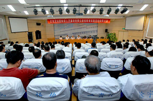 按照上级统一安排,北京天坛医院参加第一批活动,从7月到11月上旬,分为学习教育、听取意见;查摆问题、开展批评;落实整改、建章立制三个环节。各党支部要认真贯彻落实院党委制定的工作方案。活动中,始终把思想理论武装放在首位,认真查摆问题,开展批评与自我批评,切实解决突出问题。各党支部要紧密结合医改工作,把解决问题的效果切实体现在医院的中心工作中。注重加强制度建设,针对薄弱环节,堵塞制度漏洞。