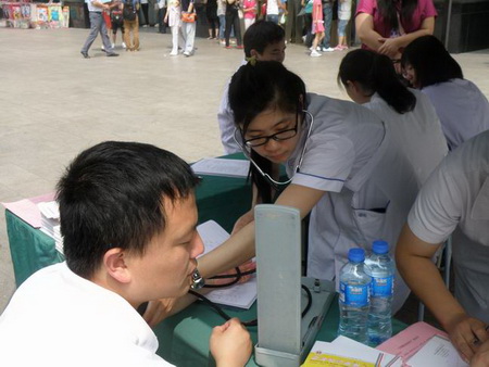 团市委领导,局党组副书记张秀芳同志也亲自到会,并讲话。团市委领导和秀芳书记的到场,对青年志愿者的关心,让大家十分激动,也使得卫生系统的青年们使命感、责任感油然而生。北京天坛医院内分泌科医生王尧同志,当即进行了献血前筛查,以一颗热忱的心诠释了志愿者支持和服务无偿献血工作的激情。