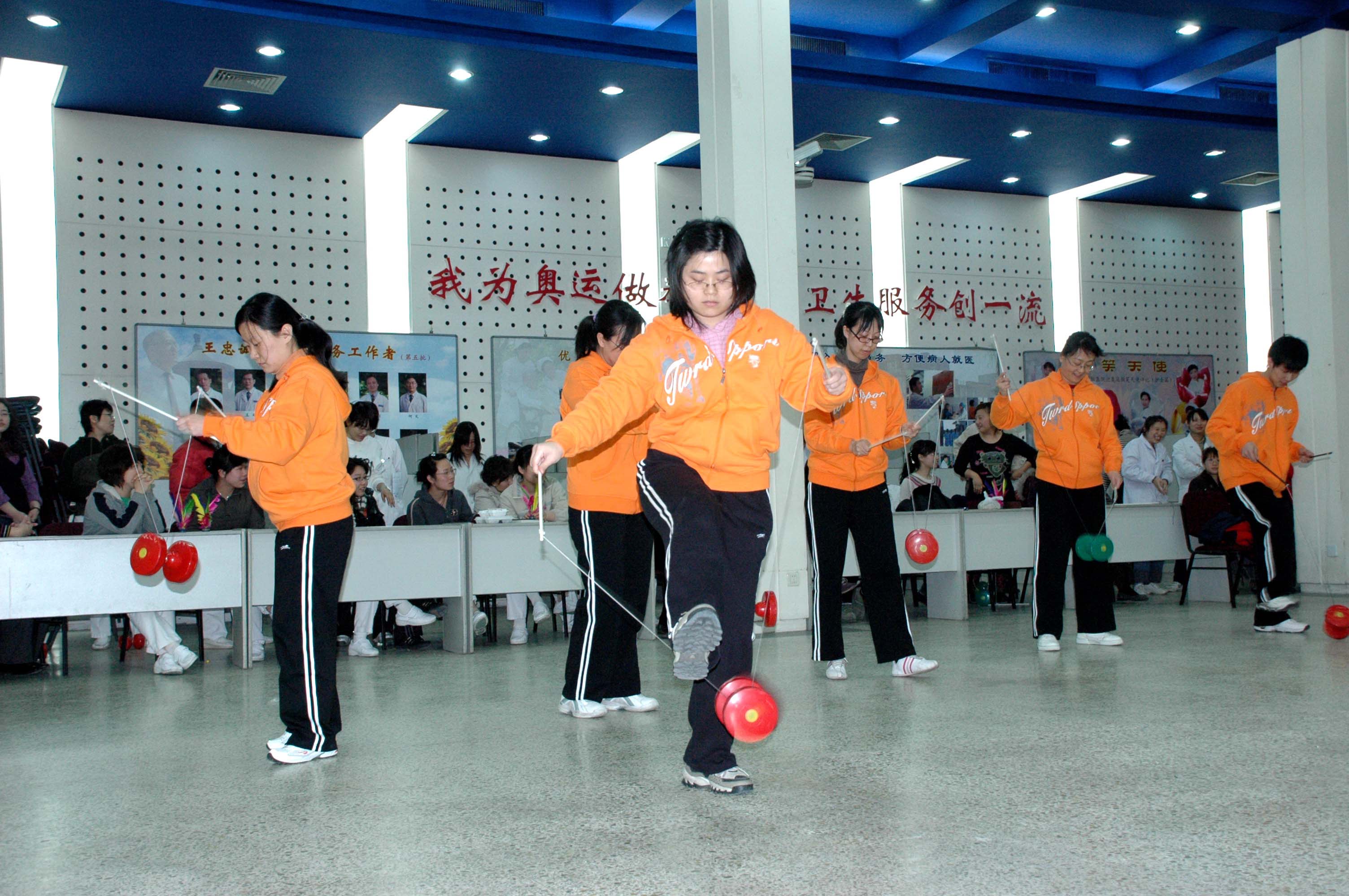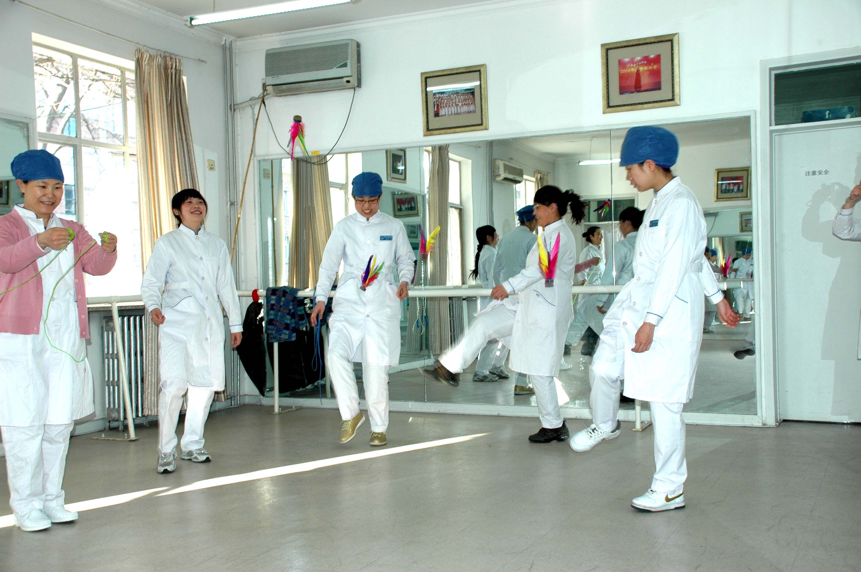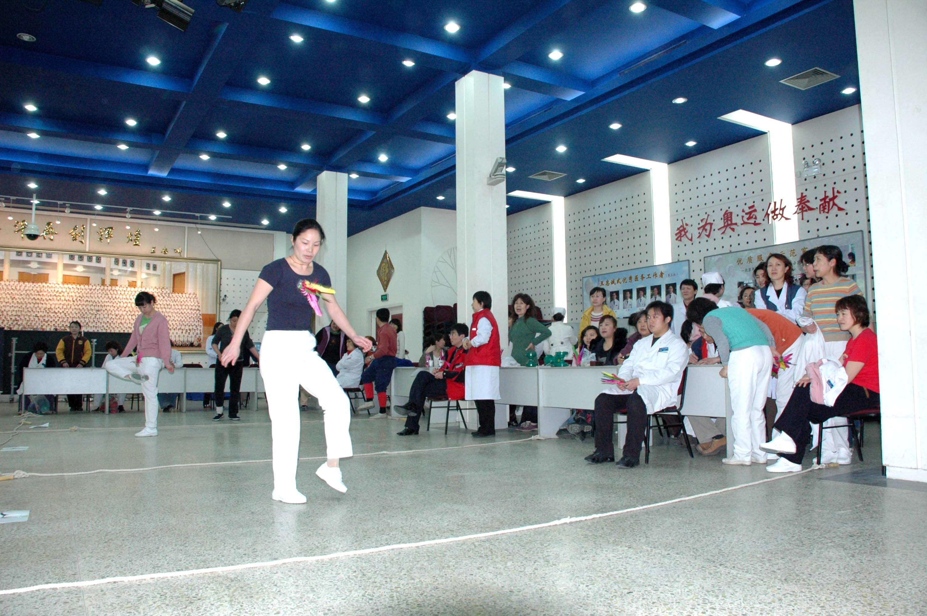 迎接“3.8”妇女节,工会组织职工踢毽、跳绳、抖空竹比赛。