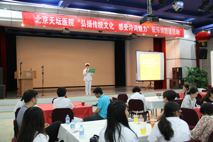 为弘扬民族精神、增强青年医务人员的社会责任感和历史使命感,结合院党委关于开展“点亮美丽人生”全员乐阅读活动的要求,6月25日下午,院团委、院工会在食堂二楼“职工之家”联合举办了“弘扬传统文化,感受诗词魅力”配乐诗朗诵活动。来自各团支部70余名青年及职工到场观赛。
