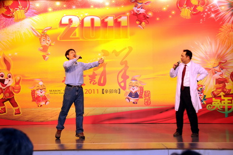 欢乐时光短,情谊永留存。新春联谊会的时间是有限的,人们之间美好祝福、情谊是无限的。人们期待着,2011年新春的钟声在带给人们节日的喜庆和欢乐、祥和的同时,也将迎来我们国家、我们医院更加辉煌、灿烂的一年。“兔驰万里步步腾飞”,兔年——必将是天坛医院人再次实现超越自我、腾飞的一年。 (刘宝光)