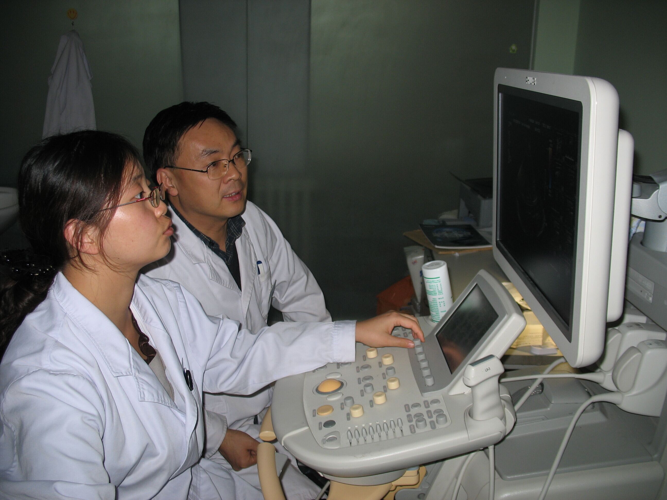 我院超声医学科师资力量雄厚,现有医护人员23名,医师22名,主管护师1名,其中博士学位5人,硕士研学位15人,本科学位2人,高级职称6人,中级职称7人,初级职称9人。拥有LogicE9、LogicE8、GE-Logic9、GE-Vivid7、TOSHIBA Apolio 500 、GE-V730、Phillips IE33、Phillips IU22,AlokaF75等24台高档彩超诊断仪和常规介入诊疗设备,日门急诊量达600-700人次,24小时开放急诊,医疗区域划分为门诊、病房、特需门诊、健康体检及术中超声。我院超声医学科专业设置全面,包括腹部、妇产、心脏、周围血管、浅表器官、介入超声,此外,还开展了超声造影、超声引导下穿刺活检、超声引导下介入治疗、术中超声、经食道超声、经颅超声、三维超声等多项新技术新业务,达到无盲区覆盖临床各学科,为住院医师规范化培训创建了广阔的平台。