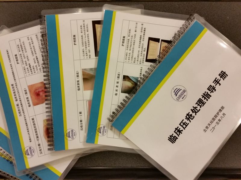 为将知识转化为临床实践,压疮小组撰写了《压疮指导手册》,内容包括“预防压疮的误区”和“临床压疮处理指导”两项内容,制作成塑封彩色活页手册,分发给医院各临床科室后,得到了护理同仁良好反馈,大家认为手册具有实用性与可读性,对临床压疮护理工作起到了有益指导和借鉴作用。