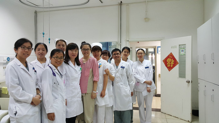 周亦伦主任摸了摸患者脉搏,脉搏快而微弱,皮肤发凉,结合事先对患者病情的了解,当即作出判断患者存在“低血容量休克”。一边是患者危重的情况,一边是肾内科简单的病房…肾内科的医务人员本着“患者生命大于一切”的理念兵分多路,开始了齐心合力的抢救工作。“心电监护”、“吸氧”、“抽血常规、血生化、淀粉酶、凝血项……”、“两部静脉通路,生理盐水全速补液”、“去药房借胶体液”、“请消化科、普外科会诊”等等,肾内科周主任亲自坐镇,一系列的指令发出;龚勇医生在进细致查体;张常勤医生与家属询问病史及交代病情;而一旁的曹菲和赵健护士在接到医嘱后,娴熟而有条不紊的接好了心电监护、氧气、抽好了血、输上了生理盐水;而这所有的一切都在不到15分钟内完成。如此高效的救治措施让家属感动的热泪盈眶。
