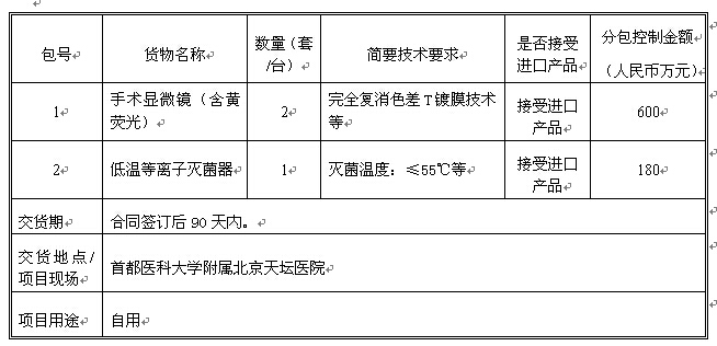 首都医科大学附属北京天坛医院移动式X线摄影系统等医用设备购置项目招标公告