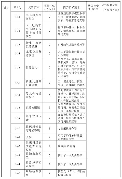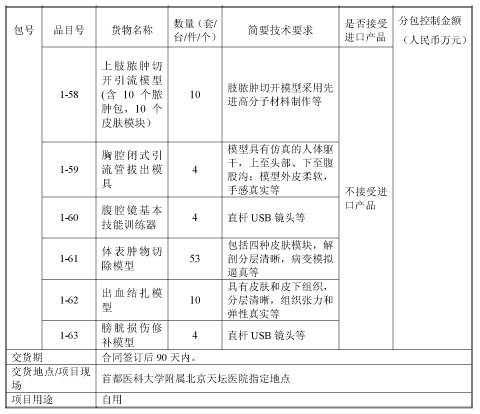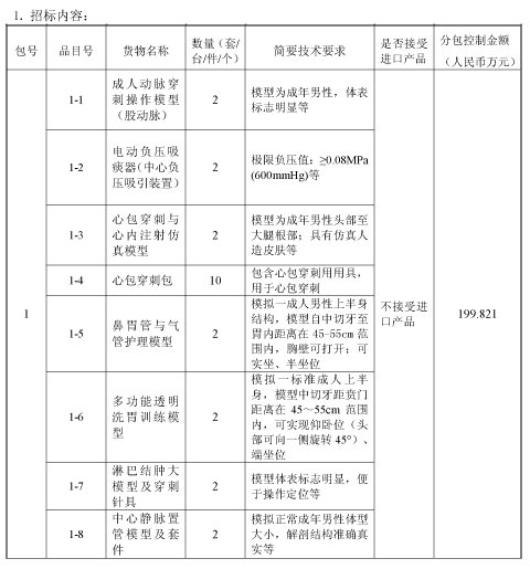 中技国际招标有限公司受首都医科大学附属北京天坛医院委托,就利用其财政资金的“临床教学-设备购置”进行国内公开招标。现邀请合格投标人就下列货物和服务提交密封投标。