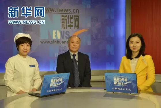 图为首都医科大学附属北京天坛医院党委书记、副院长宋茂民(中)、护士长贺欣(左一)做客新华网。新华网发 杨懿瑾摄