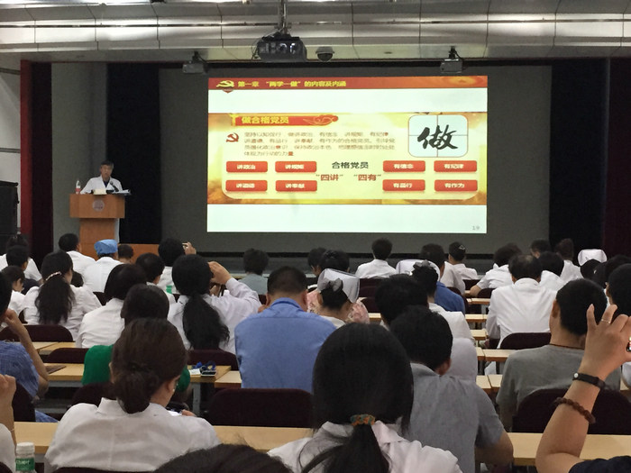 课上,王晨院长详细介绍了习近平总书记对学习党章的四点要求,生动讲述了党章基础知识及重要意义、“两学一做”的内容及内涵、落实“九不准”树立行风建设和管理工作与风险防控等方面内容。
