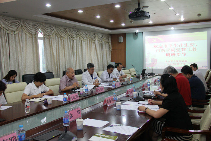 8月18日上午,北京市卫生计生委党委书记、主任,北京市医院管理局党委书记方来英,带领市卫生计生委党委委员、副主任李彦梅,办公室主任张华、组织人事处处长孔京生、团委书记袁兆龙、市医管局党群工作处处长张海鸥、组织与人力资源管理处副处长农定国一行七人来我院开展党建工作调研指导。我院党委书记宋茂民、院长王晨、党委副书记兼纪委书记肖淑萍等人参加了调研座谈会。