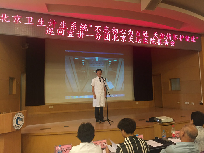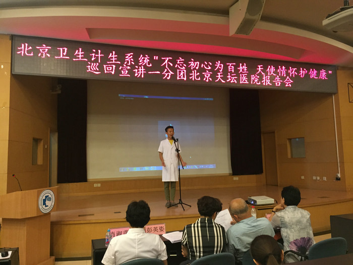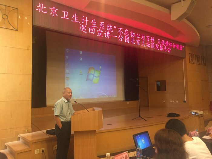 2016年9月9日下午,北京卫生计生系统“不忘初心为百姓、天使情怀护健康”巡回宣讲团第一分团报告会在我院研究所二层报告厅举行。全院党员、干部百余人参会,报告会由党委副书记、纪委书记肖淑萍主持,党委书记宋茂民致词。