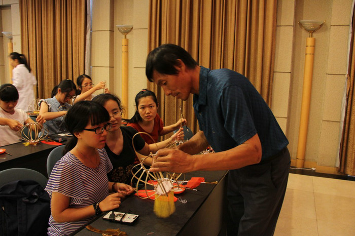 余光亮老师是北京非物质文化遗产保护项目传统彩灯、宫灯的第三代传人,曾多次为节庆庆典和大型灯会制作各式各样的彩灯,作品广受好评。他首先为大家介绍了中秋节赏玩花灯的习俗、花灯的种类,随后介绍了制作花灯的各种原材料所代表的寓意,传授手工制作花灯的技巧和要领。