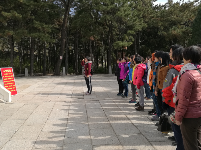 盘山烈士陵园是1957年为纪念在抗战中牺牲的革命先烈建成的。盘山地处京津唐三角地带,自古便是兵家必争之地,盘山抗日根据地建立以后,很快就成了河北东西部抗战中心。七七事变后,党中央提出在河北东部敌占区建立根据地的任务。从1940年年底到1943年年初,盘山根据地不断壮大,严重地打乱了日本侵略军的安排部署。烈士陵园由纪念馆、纪念碑、墓区组成。三个支部的40余名党员依次参观了纪念馆、墓区和纪念碑。党员们仔细观看着每一幅照片和每一件实物,认真听讲解员讲述着感人的故事,无一不深深地被烈士可歌可泣的事迹所感动。