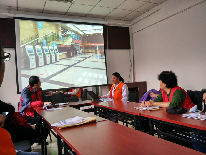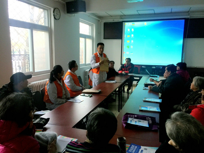 2016年11月30日,研究所党总支与医政党支部、院团委联合开展“党员进社区 服务为居民”志愿服务活动。5名党员走进芳古园二区社区活动站,面对20多位社区居民,帮助他们了解医院自助挂号的方法,解答居民们在医院就诊中遇到的难题。