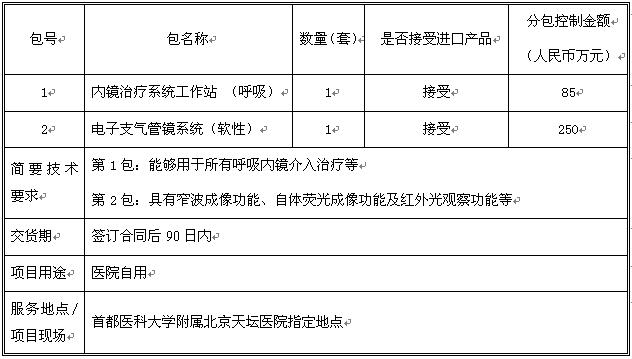 北京天坛医院医疗设备购置-分项2-呼吸科设备(招标编号:0701-164050050427)招标公告
