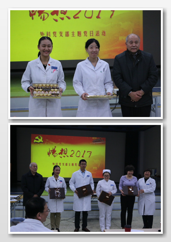 最后,在颁奖典礼之后,外科各亚科主任以及支部委员每人献上了一句新年寄语,以此畅想2017,活动在欢声笑语中圆满结束。(外科 亢卫波 邢颖)