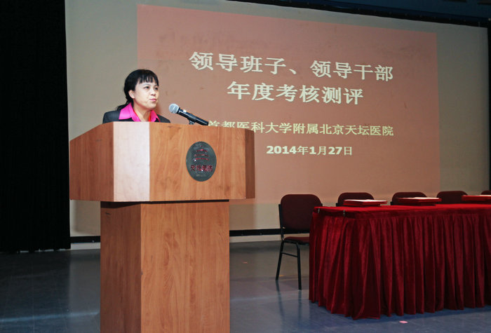 院党委书记宋茂民主持领导班子、领导干部民主测评。按照北京市医院管理局下发的《关于做好2013年市属医院领导班子和领导干部年度考核工作的通知》精神,大会首先对医院领导班子和任职满半年的领导干部进行年度考核测评,并对院党委年度干部选拔任用工作进行民主评议。