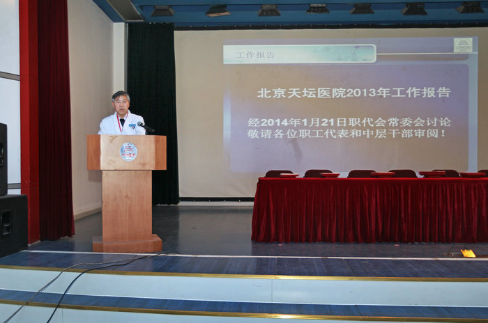 会上,职工代表听取了王晨院长代表医院领导班子做的2013年度工作总结报告。