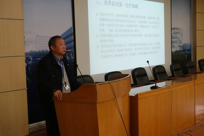 保卫处党支部书记陈春向保安人员解读了医药分开综合改革政策文件、参与医疗机构、改革启动步骤、医院配套措施以及“三取消一增设”、“规范基本医疗服务项目”、“实施药品阳光采购”、“扩大医保报销范围”、“调整低保人员社会救助”等改革主要内容。
