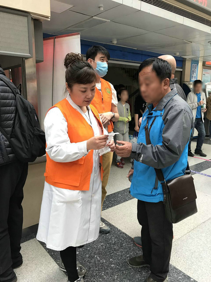 行政党支部组织医改宣传、服务团队,从4月5日起,在医药分开综合改革启动的最初一个月内,每天从早8点安排党办、院办、团委、工会、纪检办公室、宣传中心、人事处等行政科室主任及职工到门诊大厅担任志愿者,为患者答疑解惑、宣传医改政策、做好患者的情绪疏导。