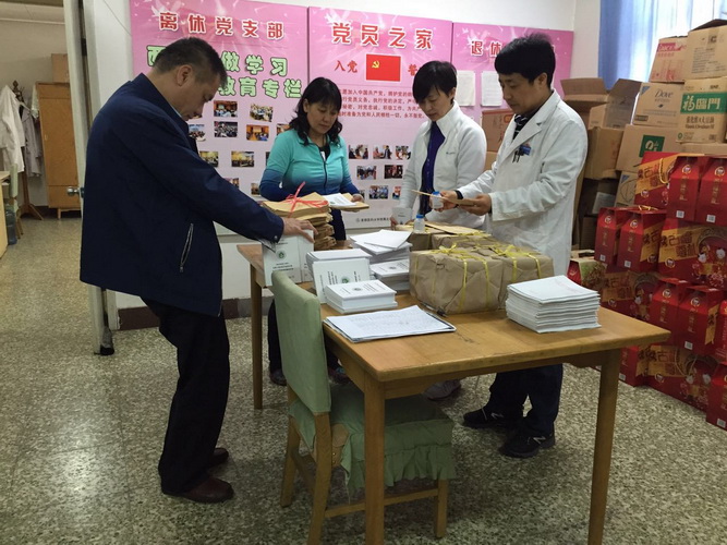 2017年4月7日,我院离退休党总支召开了党员骨干夕阳红志愿者医药分开综合改革学习培训会,大会由离退办主任杨红宾主持。会上为大家播放了北京市卫计委高小俊主任为卫生系统老干部作的医改情况通报视频,离退办副主任石春萍带领大家学习了此次医改的政策,并宣读了“关注医改聚心力 同心同德促发展”活动倡议书。从4月10日起,夕阳红党员志愿者将在门诊大厅发挥独特优势,为新医改助力。夕阳红党员志愿者还对家属院行动不便的离休老干部专门到家送书送学上门。