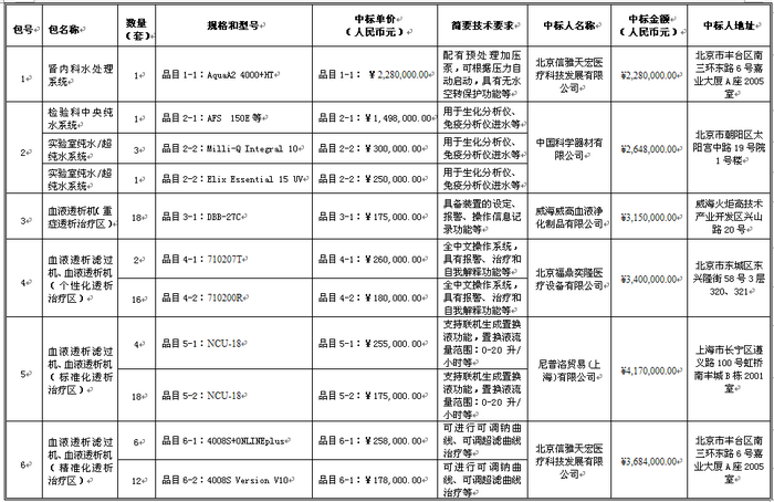 医疗设备购置-分项12-血液透析机等项目中标公告
