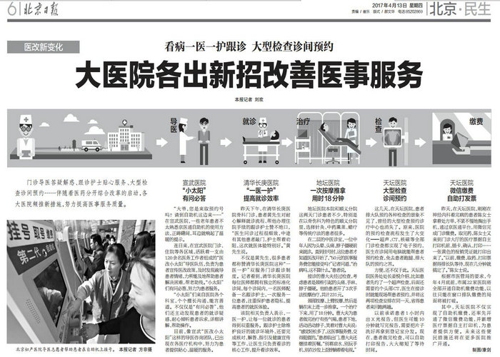 【北京日报】2017-04-13 大医院各出新招 改善医事服务