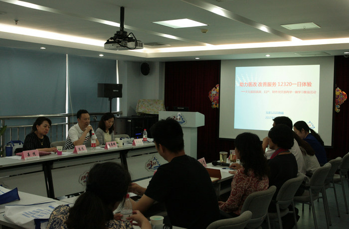 在各项体验完成后,12320公共卫生热线服务中心的领导与三个支部的党员一起进行了座谈,大家对体验过程中的感悟和学习到的经验进行了交流。医政支部张悦书记、妇产科于秋芸书记和财务赵锦辉书记分别就如何与患者进行耐心细致沟通、如何传达正能量和增进医患理解、改进服务等方面内容、经验进行了座谈,三个支部的部分党员也针对这次体验得到的感悟和想法做了发言。