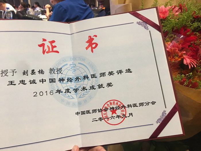 我院神经外科刘丕楠教授获2016年王忠诚神经外科医师奖“学术成就奖”