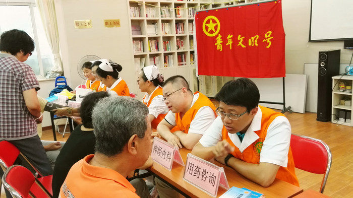 三是开展“送健康进社区”公益实践活动。7月26日上午,在院团委带领下,血管神经病学二病区、神外三病房、神外一病房、药学部临床药学组等四家青年文明号集体成员一行9人,走进东城区东直门街道香河园北里社区开展健康宣教活动。