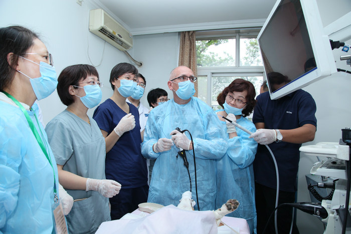 Herth教授和国内很多呼吸内镜介入专家还兴致勃勃地参观了我院的呼吸内镜室,对于天坛医院呼吸内科在目前有限的硬件设施条件下,取得如此令人瞩目的成绩赞叹不已。同时他们也了解到,天坛医院将于下个月开始新院搬迁工程,在院领导的支持下,呼吸内镜室将扩大到目前的四倍规模,届时天坛医院的呼吸内镜室将在硬件设施上有极大改善。