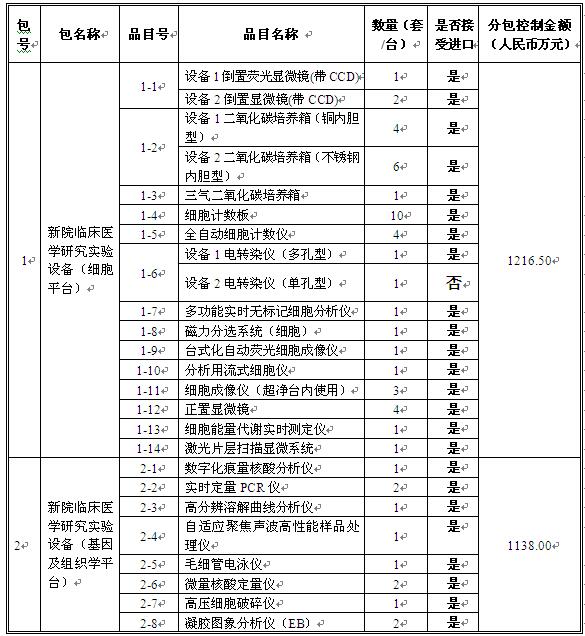 中技国际招标有限公司受首都医科大学附属北京天坛医院委托,就利用其财政资金的“新院临床医学研究实验设备-分项1”进行国内公开招标。现邀请合格供应商就下列货物和服务提交密封投标。