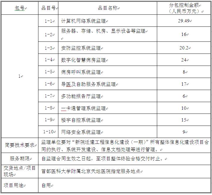 北京天坛医院“新院迁建工程信息化建设(一期)- 监理服务”【编号:0701-174160100375】