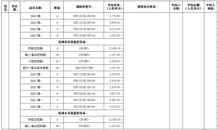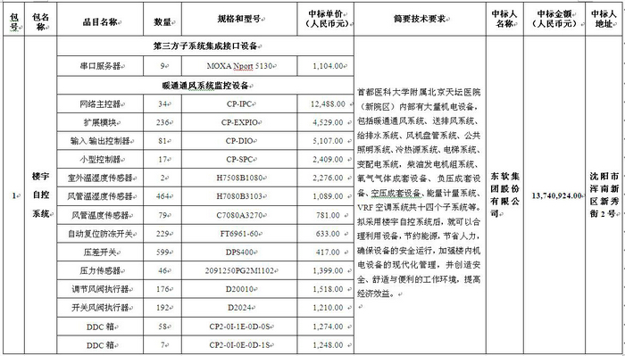 天坛医院新院迁建工程信息化建设(一期)-楼宇自控系统中标公告【编号:0701-174160100372】