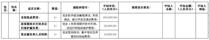 九、包号、品目号、包名称、数量、规格和型号、中标单价、简要技术要求、中标人名称、中标金额、中标人地址