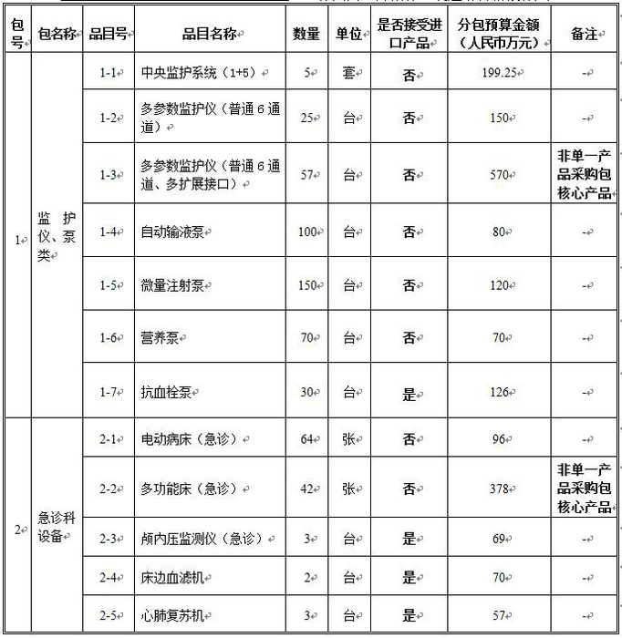 北京天坛医院医用设备购置-分项4(监护室、急诊科设备)招标公告【编号:0701-184160100103】