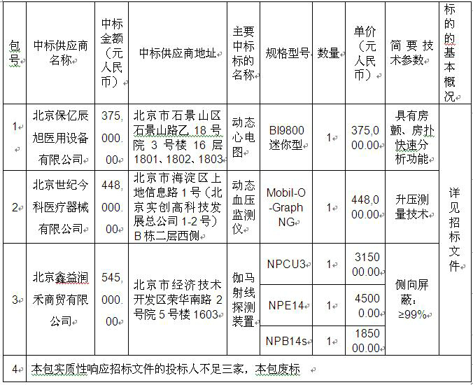 北京天坛医院医用设备购置-分项2中标公告【编号:TC180V0BV】