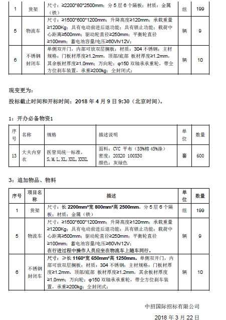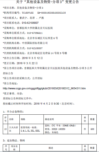 北京天坛医院关于“其他设备及物资-分项3”变更公告