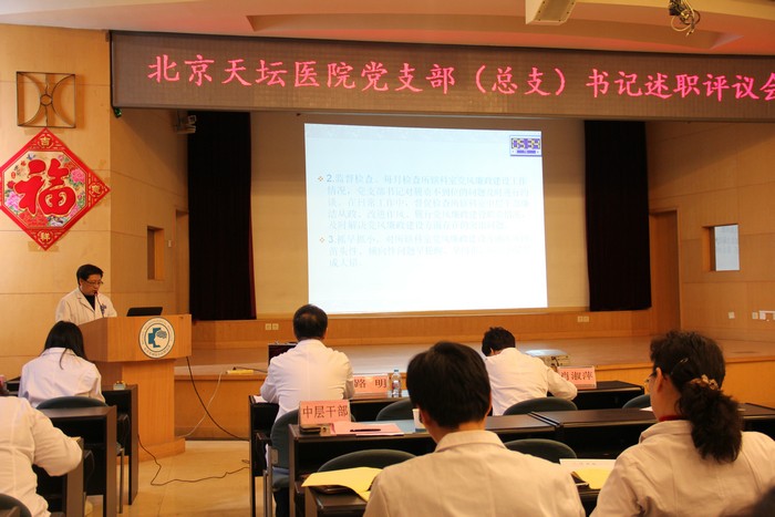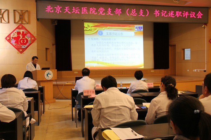 为深入贯彻落实党的十九大精神和习近平新时代中国特色社会主义思想,进一步推动全面从严治党向基层延伸,提高党支部书记抓支部党建的主体责任意识,规范基层组织规范化建设,3月15日下午,我院党委组织召开了首都医科大学附属北京天坛医院“党支部(总支)书记述职评议会”。会议由党委副书记、纪委书记肖淑萍同志主持,党委书记路明、党委委员、各党支部(总支)书记、中层干部和党员代表共百余人参会。