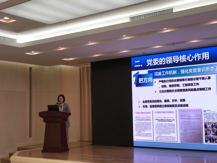 会议分为主题报告和交流研讨两个环节,天坛医院党委办公室主任张琳、医务处处长姜悦、人力资源处处长王忠从各自分管领域做了题为《现代医院管理制度下党建工作的做法与思考》、《医疗工作情况汇报》与《医院组织编制与岗位管理》的主题报告。座谈交流环节,与会同志就医院不良事件上报情况、人员岗位配置情况、全科医学科定位、承担的功能、病房设置问题以及新常态下医院党建工作存在的难点问题等进行了深入地探讨。各处室负责人对于医政医管局领导所提出的问题进行了耐心、明确、细致地解答。国际医疗部负责人任添华对目前公立医院特需医疗改革提出了几点看法,同时做为民盟盟员、北京市民盟医卫专家组成员,对于医院统战工作也提出了自己的一些意见和建议。