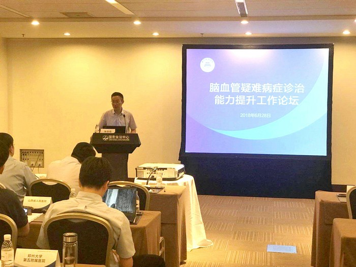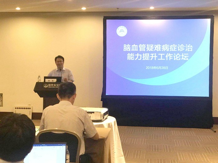 2018年6月28日,首都医科大学附属北京天坛医院在国家会议中心举办了“脑血管疑难病症诊治能力提升工作论坛”。本次会议重点围绕脑血管疑难病症诊治能力提升项目(以下简称“脑血管疑难病项目”)的规划建设开展主题报告和研讨,旨在进一步落实国家疑难病症诊治能力提升工程的工作要求,为下一步工作开展指明方向。