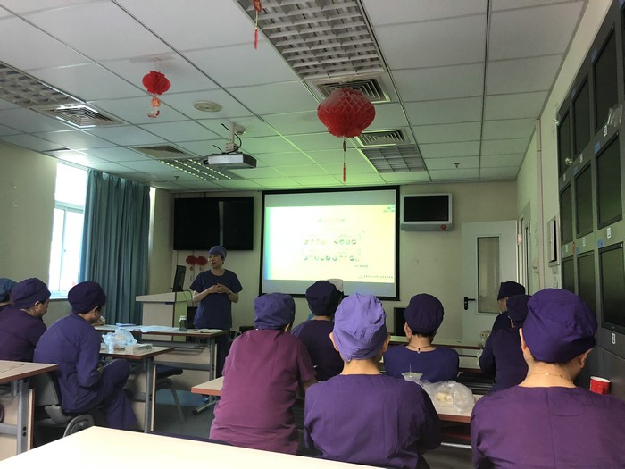 随后手术室护士田淳讲解了手术室压力性损伤的发生机制、评估预防要点,并向大家展示了全新的网络答题测评系统。激发了各位老师的学习热情及兴趣。此次启动会通过互动形式,提高了我院手术室护士对于手术压力性损伤管理的重视程度。希望通过这次规范化培训,提高手术室护士分析问题和预见危险的能力。在长期的护理实践过程中形成规范的工作习惯,从而提升受压皮肤安全系数,降低压力性损伤不良事件的发生。
