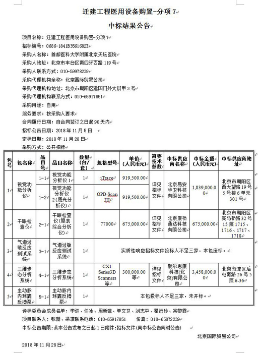 北京天坛医院迁建工程医用设备购置-分项7中标结果