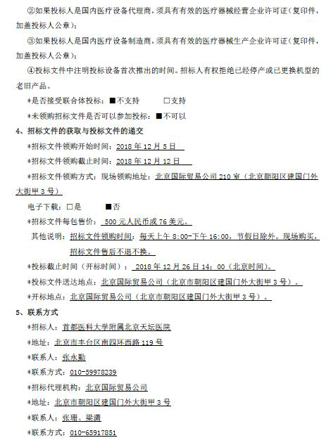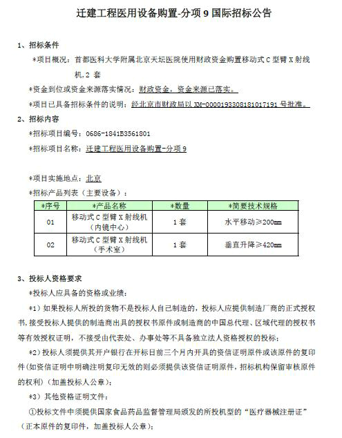 北京天坛医院迁建工程医用设备购置-分项9 国际招标公告